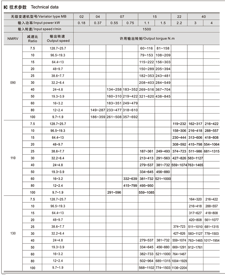 MB-NMRV組合系列無級(jí)變速機(jī)