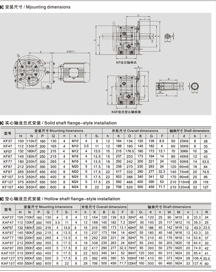 KF-軸伸式、法蘭安裝;KAF-軸裝式、法蘭安裝