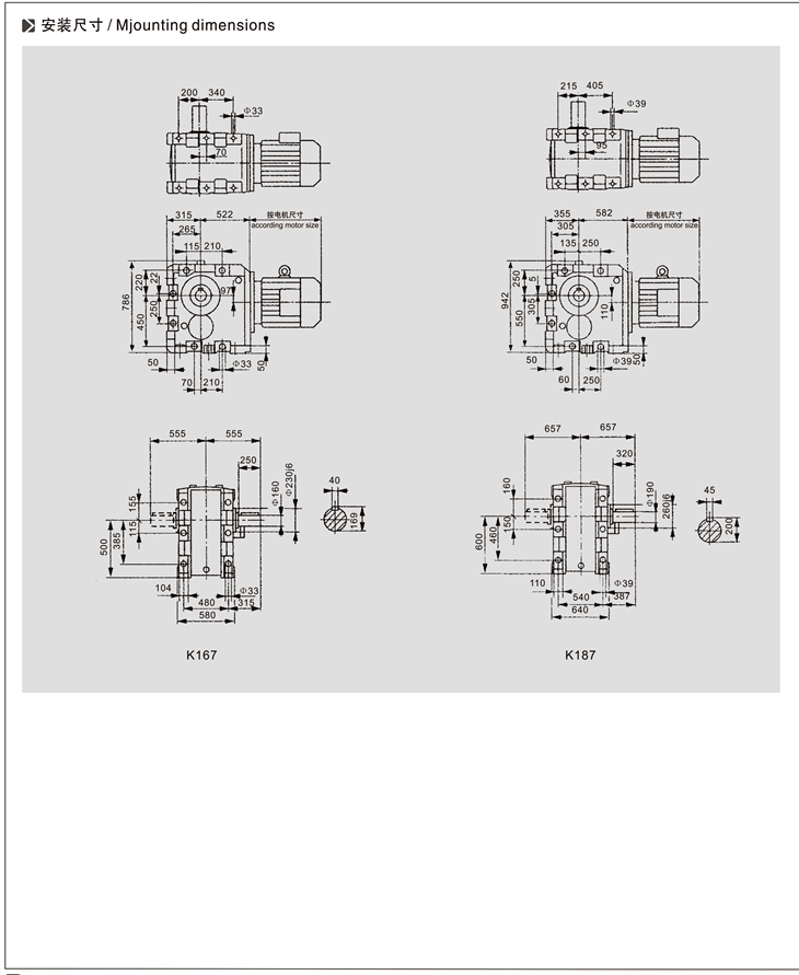 6、經過精密加工,構成了斜齒輪、傘齒輪、錐齒輪傳動總成的減速機配置各種類電機,形成機電一體化,完全保證了減速機產品使用質量特征。