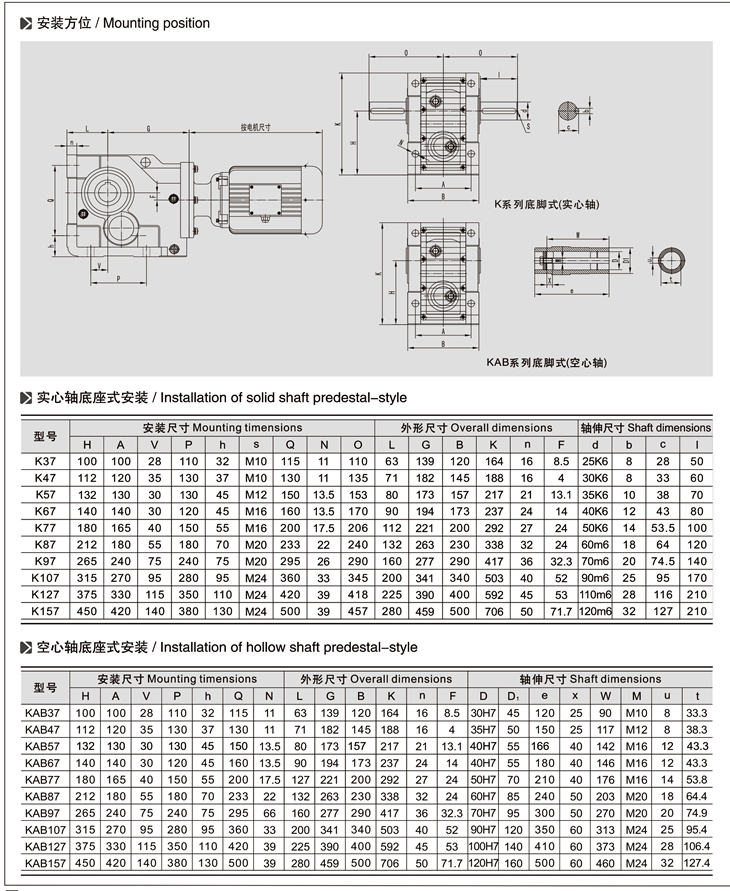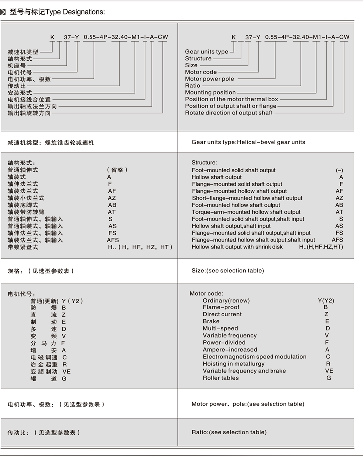 K-軸伸式、底腳安裝;KA-軸裝式聯接